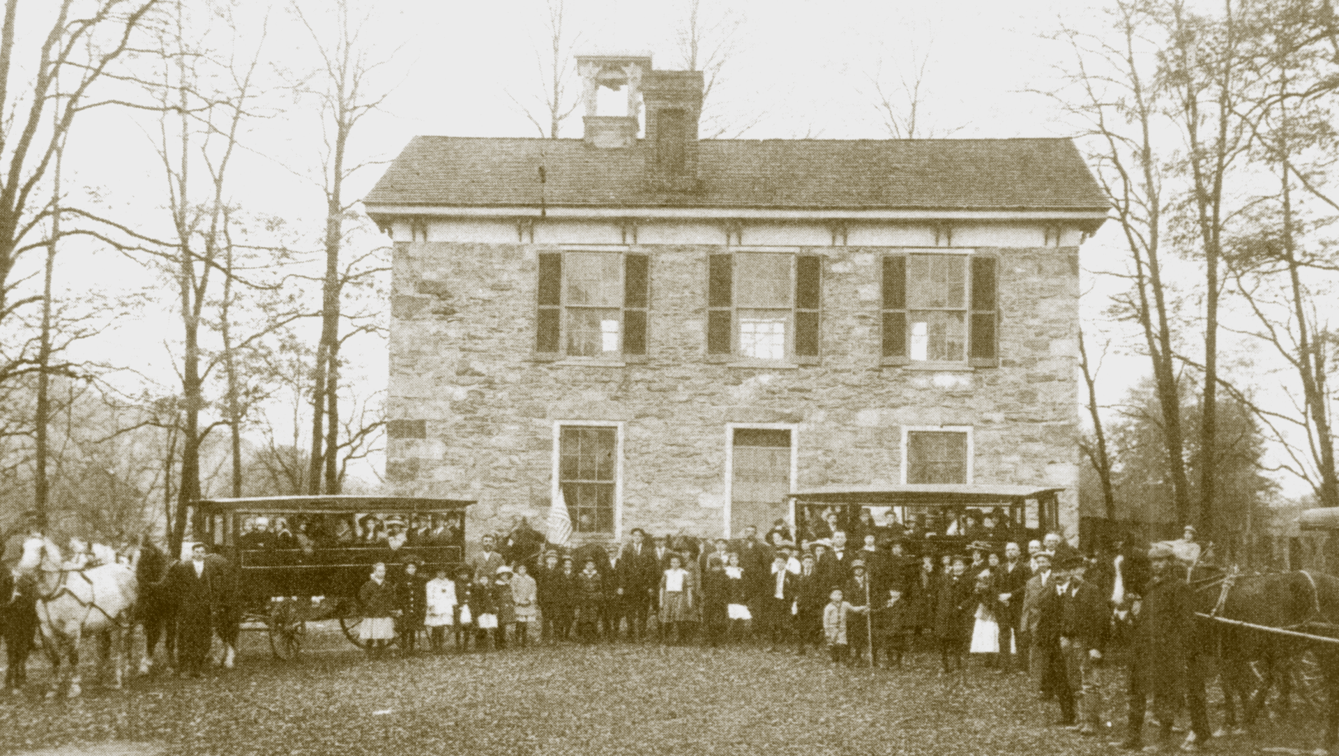 A central feature of the town is its Old Stone School. Originally named Locust Grove Academy, the oldest part of the building, the east wing, was built in 1874. The academy's first principal was Mrs. J.B. White. The Old Stone School, as it is referred to now, is situated at the eastern entrance to the town on Route 9. The stone structure was completed in 1917 with the addition of more rooms on the west side. A junior high school was established there in 1918 and operated for 17 years, until 1935. The brick auditorium was added in 1929. Classes for grades one through seven were taught there until the spring of 1966, when Hillsboro Elementary opened. The school was the hub of the community in the early 1900s. Community plays were frequently held there with a local orchestra that played during intermission.